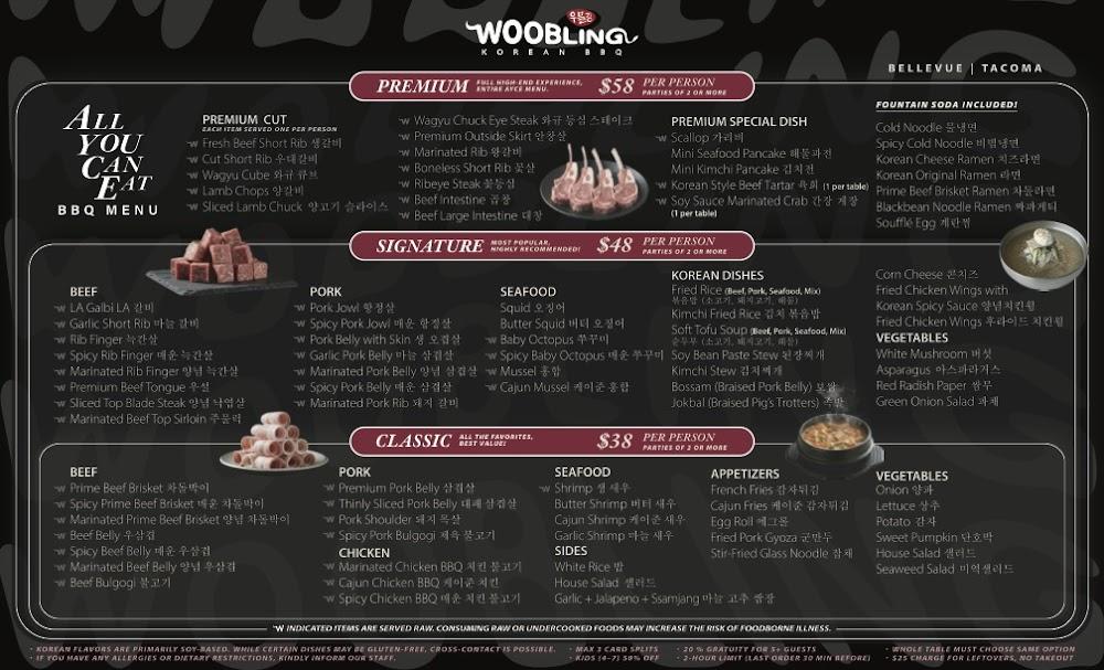 Woobling's menu presents a delightful array of authentic Korean dishes. Guests can choose from different all-you-can-eat options: Signature, Premium, and Classic. Each category features various marinated meats, allowing diners to explore an enticing selection. Personal favorites include beef bulgogi, marinated shrimp, and spicy pork, each delivering bold flavors. The side dishes, or banchan, enhance the meal, with items ranging from kimchi to pickled radishes. These highlights complement perfectly grilled meats.